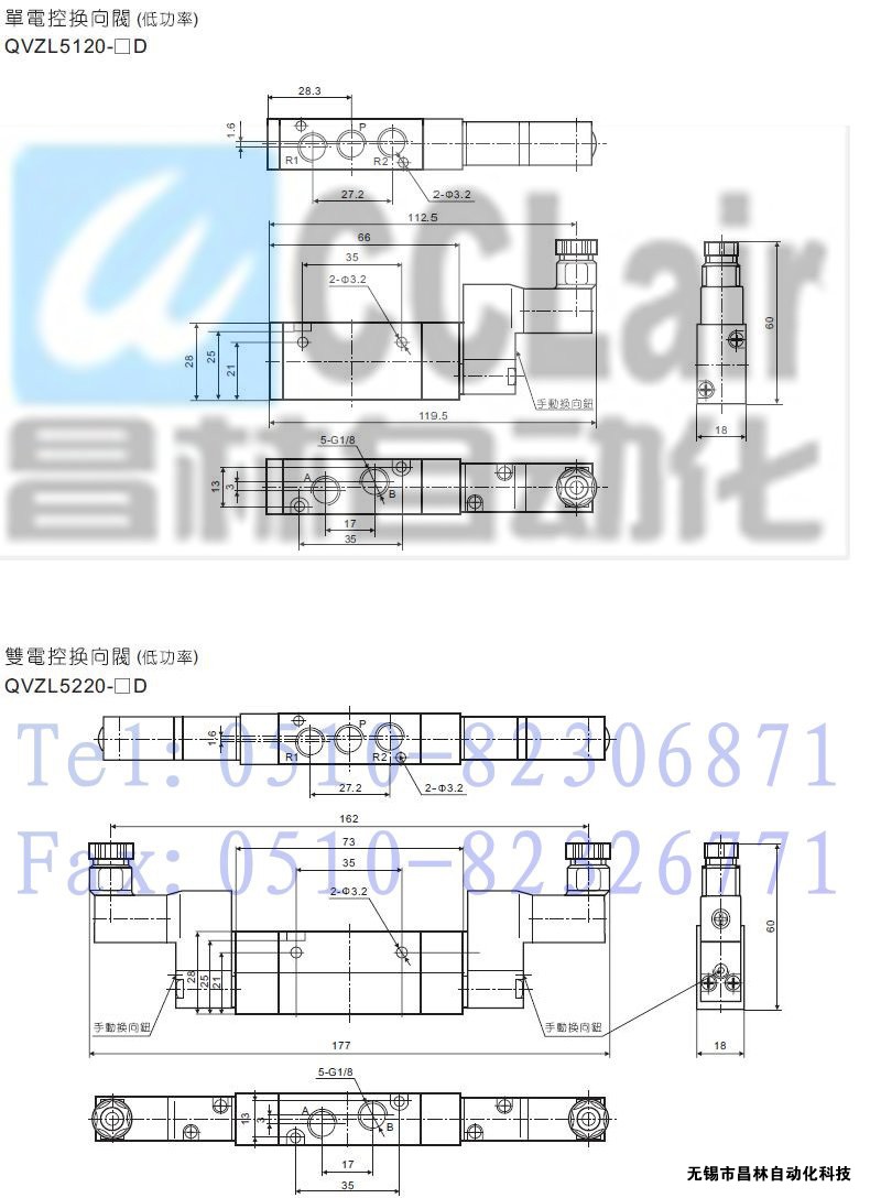 QVZB5120-7G-01,QVZB5120-7D-01,QVZB5120-8G-01,QVZB5120-8D-01,二位/三位五通電控換向閥
