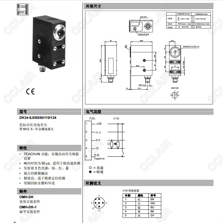 DK34-9,5/8S50/110/124,DK35-9,5/110/124,色標(biāo)傳感器
