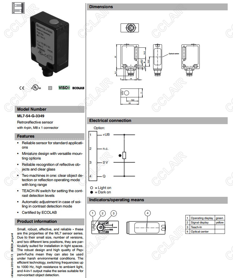 ML7-54-G-3349,反射板型傳感器