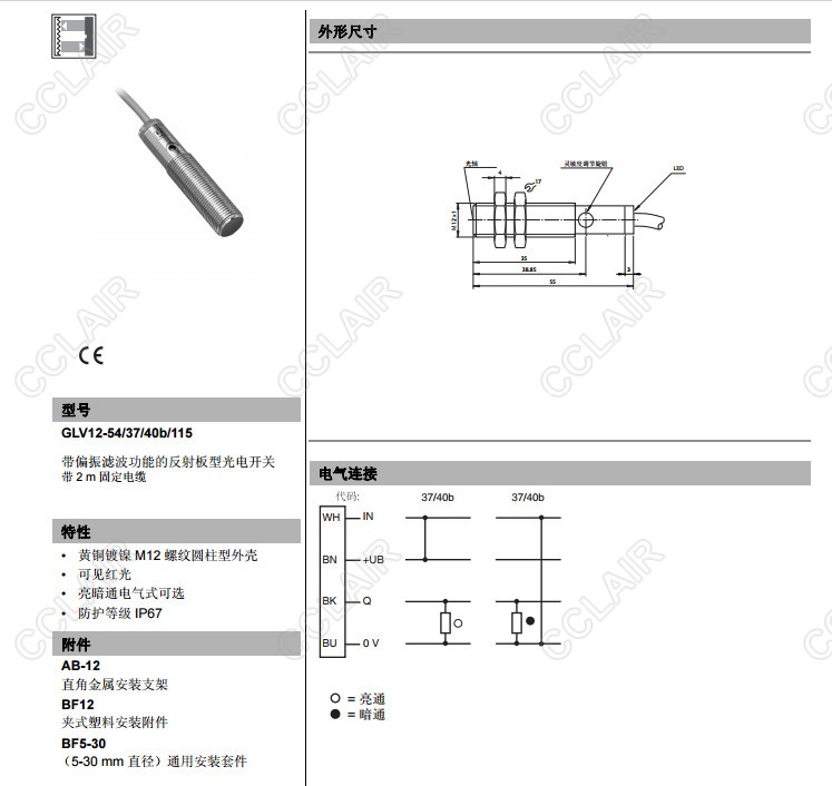 GLV12-54/36/40b/115,GLV12-54/37/40b/115,反射板型傳感器