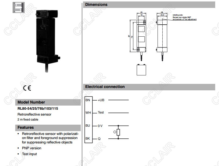 RL80-54/25/76b/103/115,反射板型傳感器