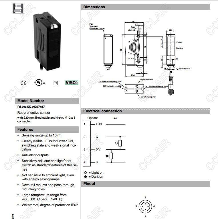 RL28-54-G/47/115,RL28-54-G/76a/110/115,RL28-55-2547/47,反射板型傳感器