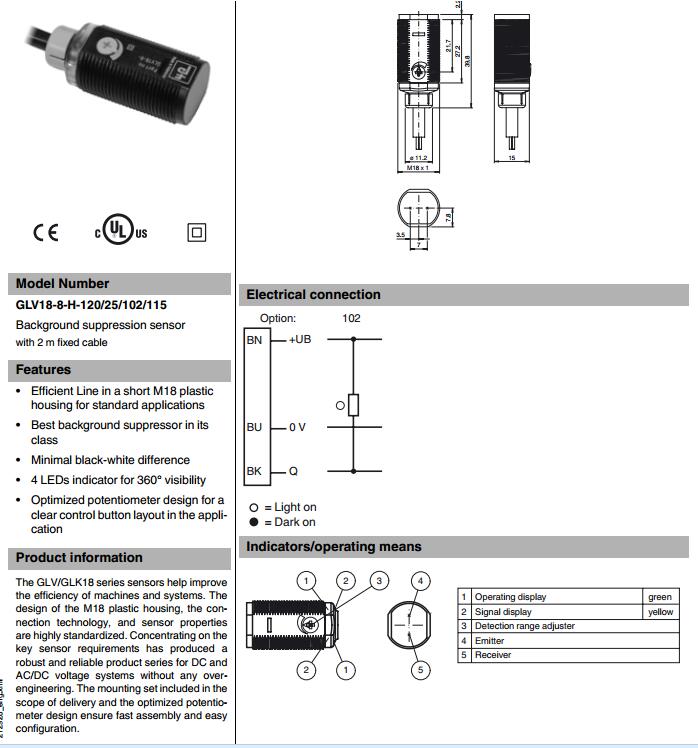 GLV18-8-H-120/25/102/115,漫反射型傳感器