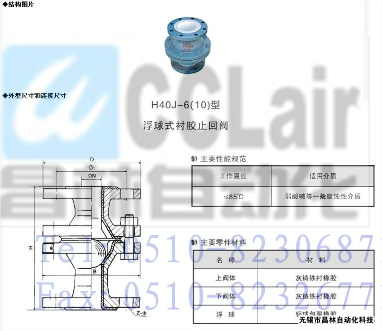 H40F46-0.6,H40F46-1.0,H40F46-6.0,H40F46-10,浮球式襯氟止回閥