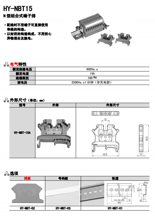 HY-NBT-15A,N型組合式端子排