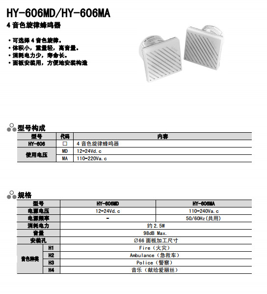 HY-606MD,HY-606MA,4音色旋律蜂鳴器