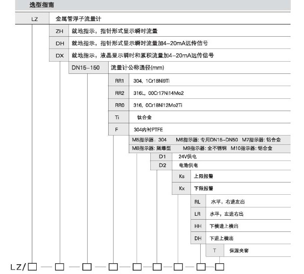 LZ-DX-15,LZ-DX-25,LZ-DX-40,LZ-DX-50,LZ-DX-80,LZ-DX-100,LZ-DX-150,金屬管浮子流量計(jì)M5指示器
