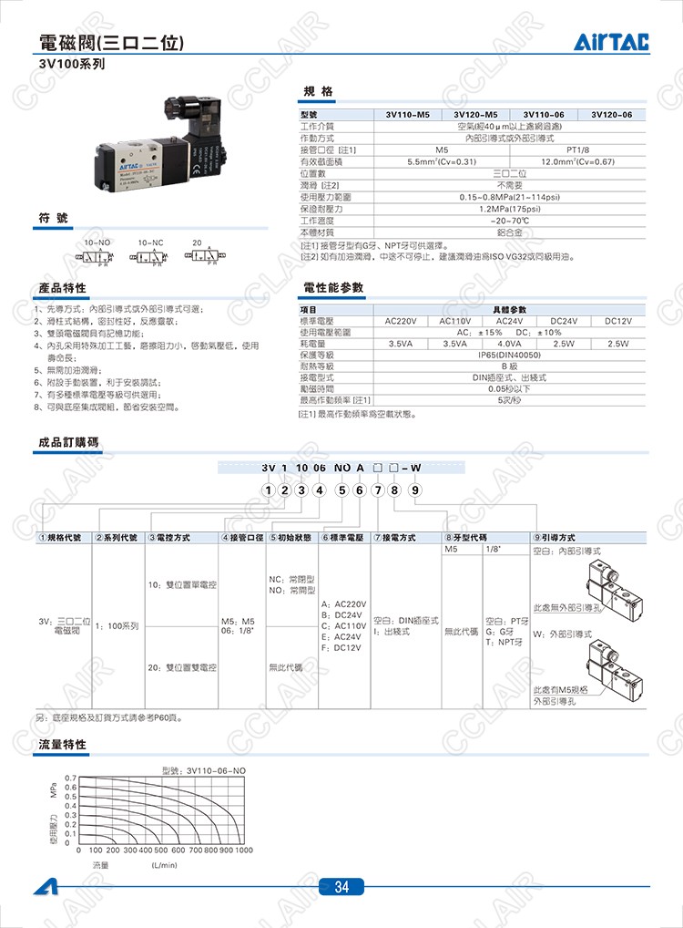 3V110-M5-NC,3V110-M5-NO,3V120-M5-NC,3V120-M5-NO,3V110-06-NC,3V110-06-NO,3V120-06-NC,3V120-06-NO,AIRTAC亞德客電磁閥