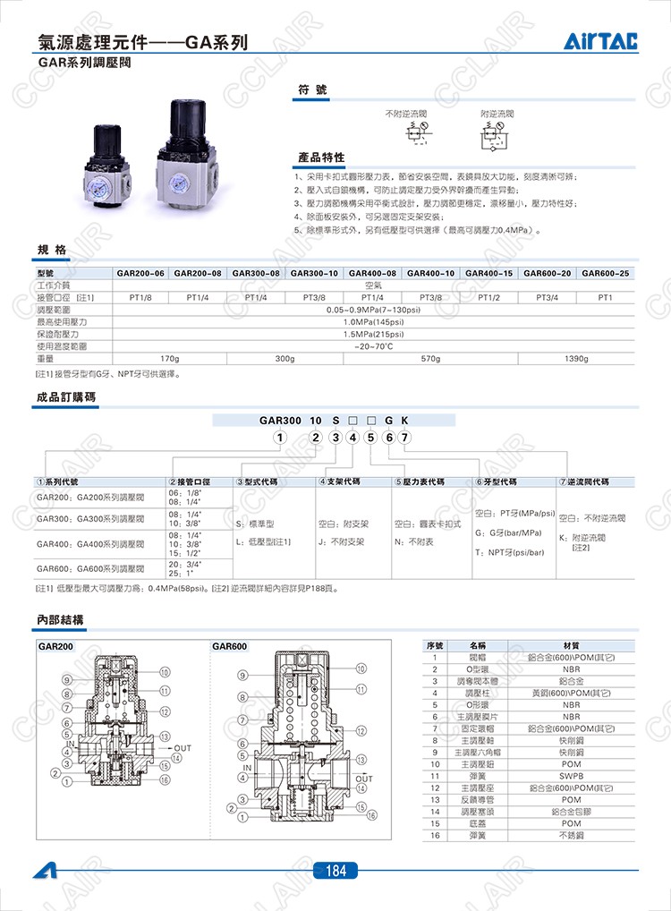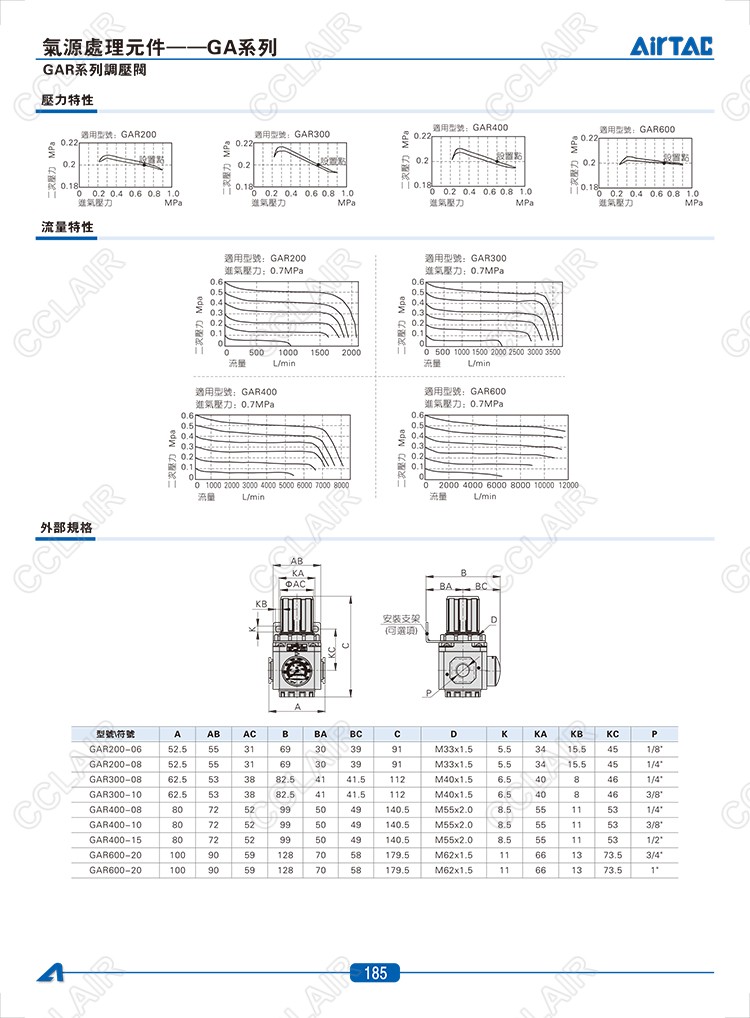 GAR200-06,GAR200-08,GAR300-08,GAR300-10,GAR400-08,GAR400-10,AIRTAC調(diào)壓閥