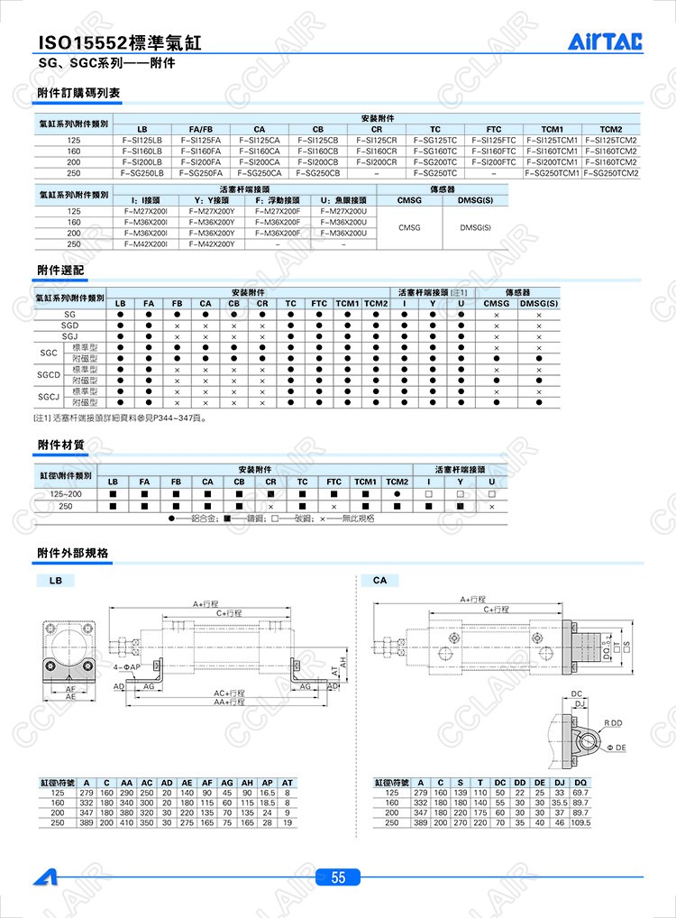 LB125,CA125,FA/FB125,CB125,TC125,CR125,FTC125,TCM1125,TCM2125,AIRTAC亞德客標(biāo)準(zhǔn)氣缸附件
