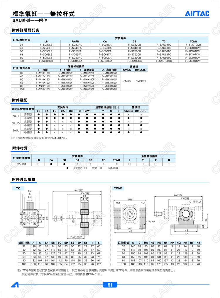 LB32,LB40,CA32,FA/FB32,CB32,TC32,TCM132,TCM140,AIRTAC亞德客標(biāo)準(zhǔn)氣缸附件