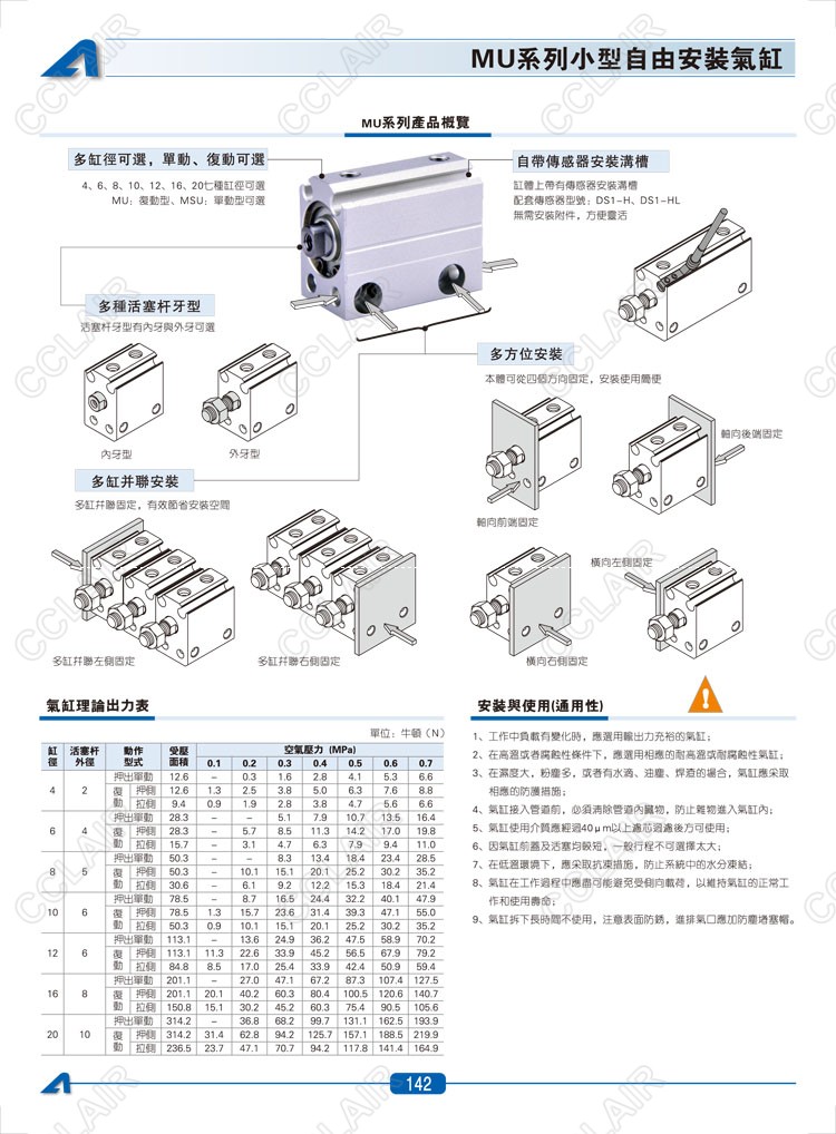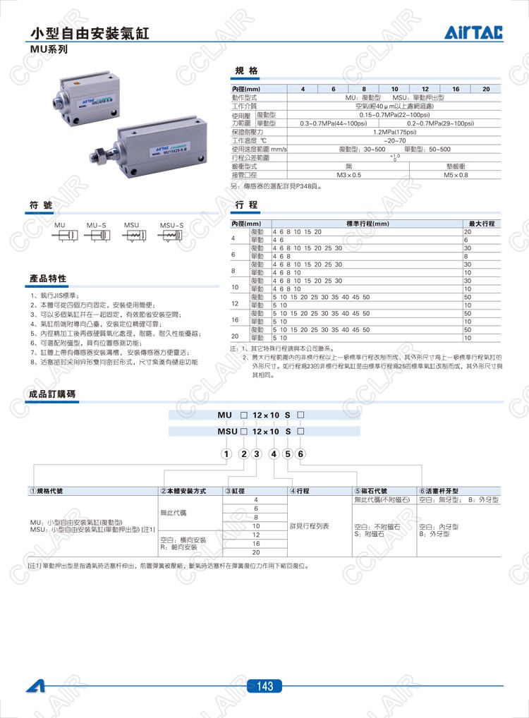 MU4*4,MU4*4-S,MU4*6,MU4*6-S,MSU4*4,MSU4*4-S,MSU4*6,AIRTAC亞德客小型自由安裝氣缸