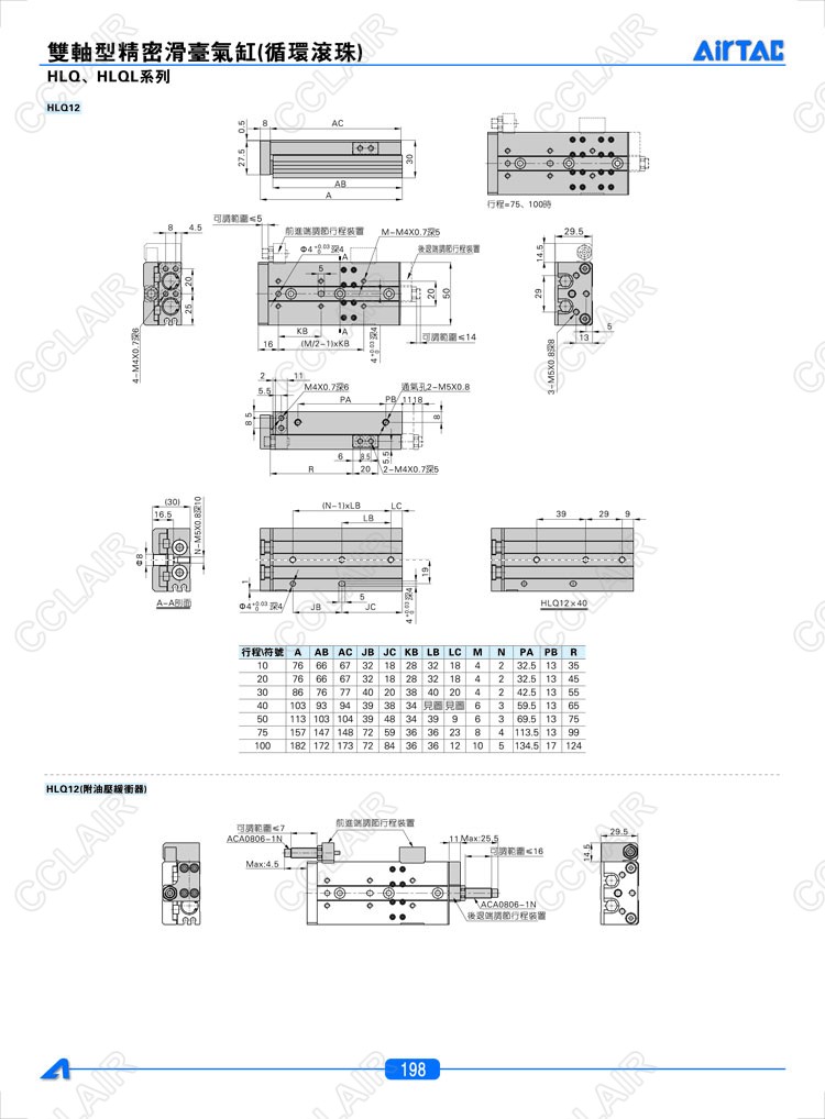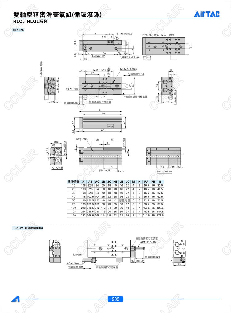 HLQ6*10-S,HLQ6*20-S,HLQ6*30-S,HLQL6*10-S,HLQL6*20-S,HLQL6*30-S,亞德客AIRTAC雙軸型精密滑臺氣缸