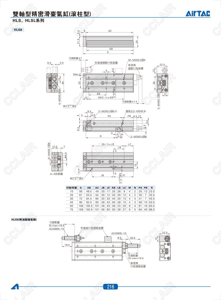 HLS6*10-S,HLS6*20-S,HLS6*30-S,HLSL6*10-S,HLSL6*20-S,HLSL6*30-S,AIRTAC亞德客雙軸型精密滑臺氣缸