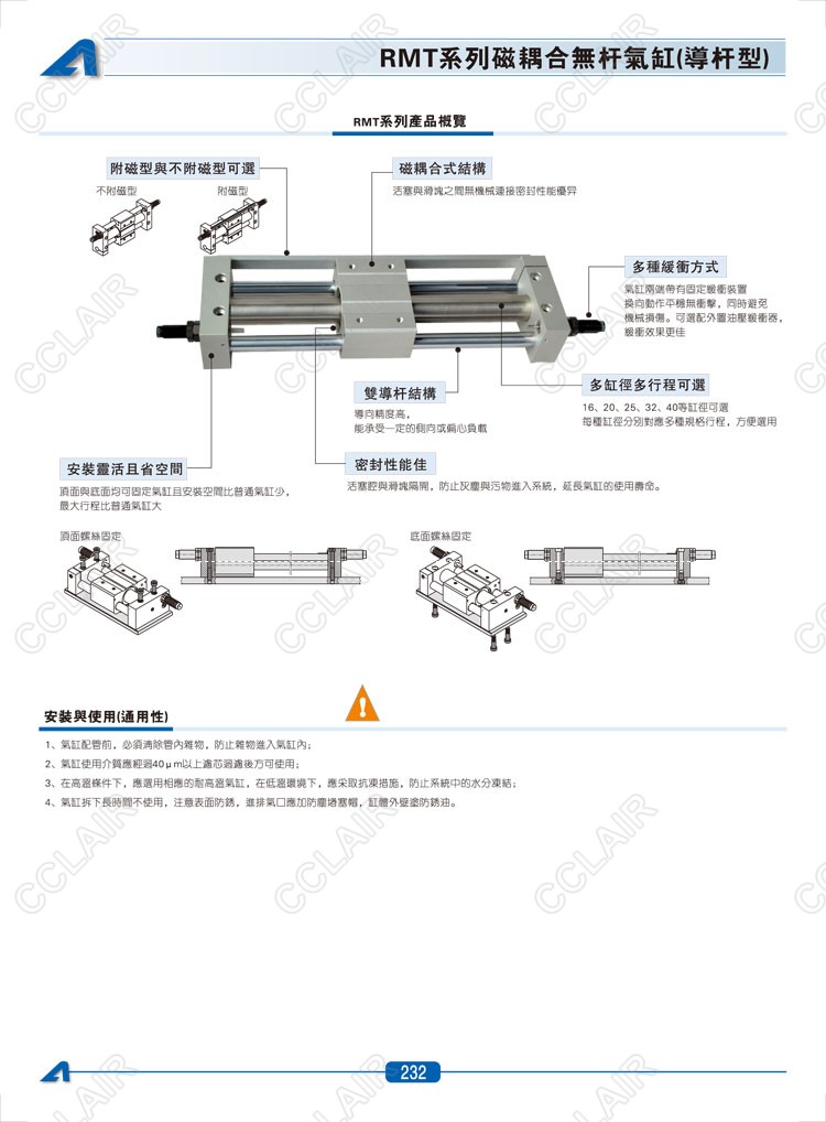 RMT16*50,RMT20*50,RMT25*50,RMT32*50,RMT32*50-S,RMT40*50,RMT40*50-S,亞德客AIRTAC磁耦合無桿氣缸