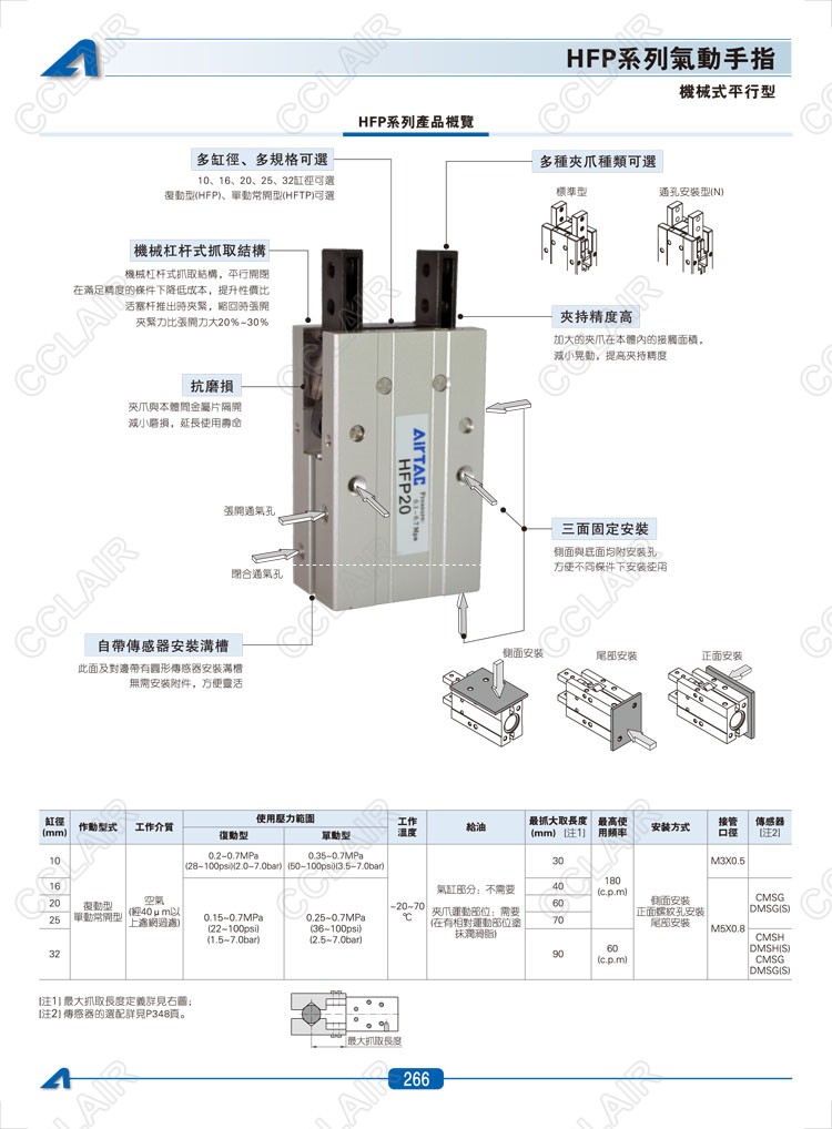亞德客AIRTAC,HFP10,HFP10-N,HFP16,HFTP16-N,HFTP20,HFTP20-N,氣動手指