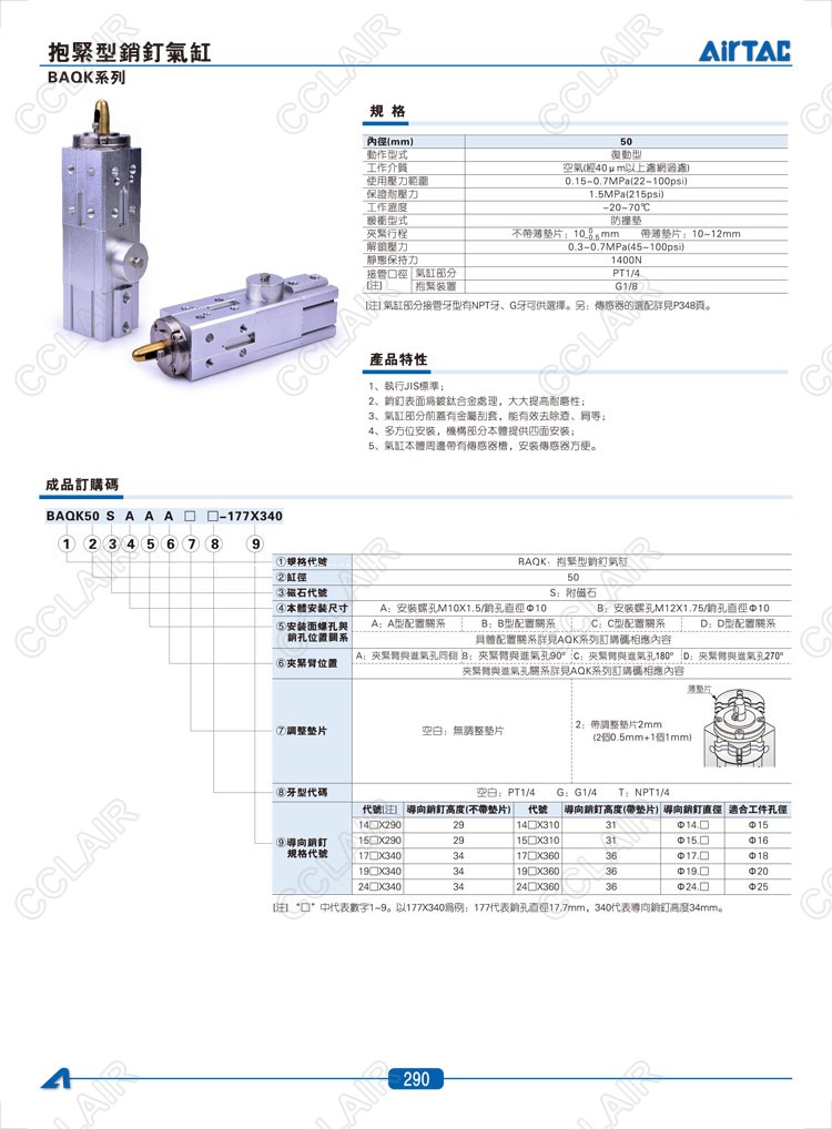 亞德客AIRTAC,BAQK50SAAA,BAQK50SAAB,BAQK50SAAC,BAQK50SBAA,BAQK50SBAB,BAQK50SBAC,銷釘氣缸