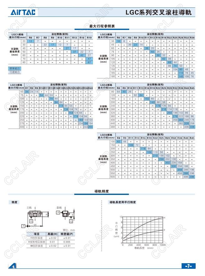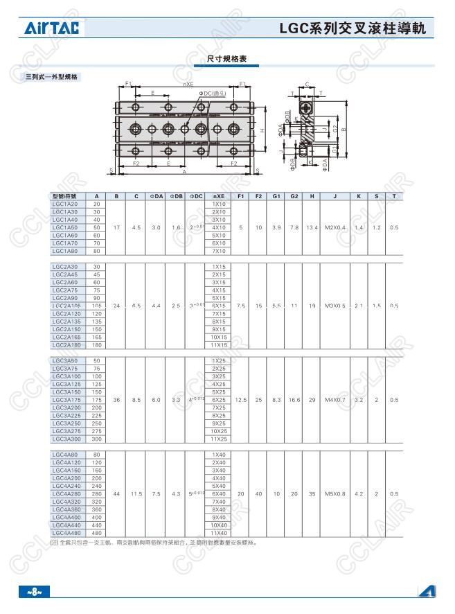 亞德客AIRTAC,LGC1A20,LGC1A30,LGC2A30,LGC2A45,LGC3A50,LGC3A75,LGC4A80,LGC4A120,交叉滾柱導軌