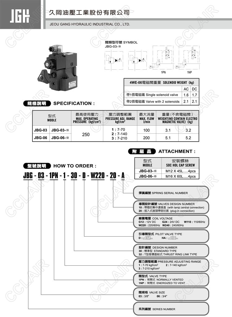JBG-03-1PN-1-30-D-G12-10-A,JBG-03-1PN-1-32-D-G12-20-A,JBG-06-1PN-2-30-HA-W220-20-A,JBG-03-1NP-3-32-HA-G24-10-A,JBG-06-1NP-3-32-HA-W110- 20-A,JBG-06-1NP-2-32-D-G24-10-A,JBG-06-1PN-2-32-HA-W220-20-A,JeouGang臺(tái)灣久岡,先導(dǎo)式溢流閥
