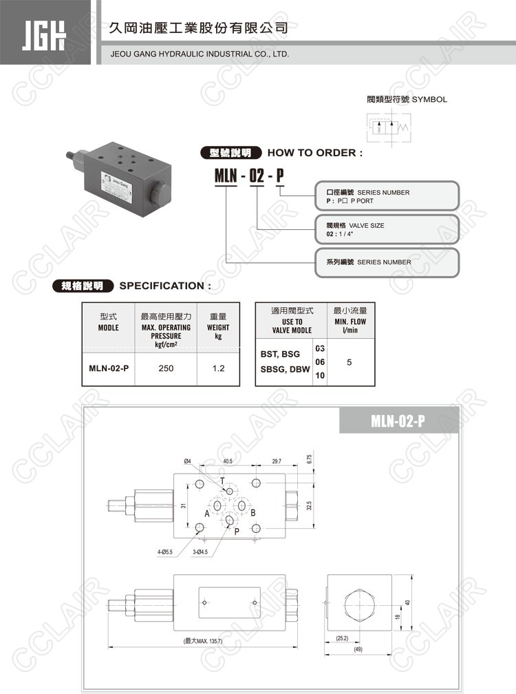 JeouGang臺灣久岡,疊加式緩沖閥MLN-02-P
