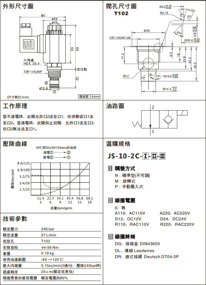 JS-10-2C-P-0-DR,JS-10-2C-P-A110-DR,JS-10-2C-P-D12-DR,JS-10-2C-P-R110-DR,JS-10-2C-P-A220-DR,JS-10-2C-P-D24-DR,JS-10-2C-P-R220-DR,兩通常開型電磁換向閥