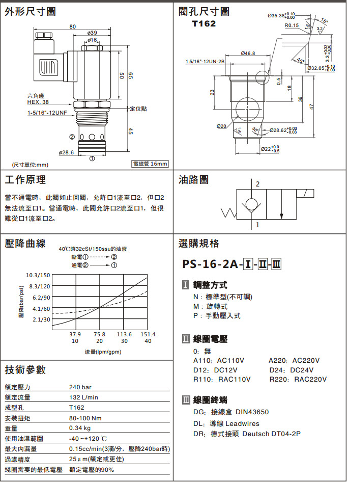 PS-16-2A-P-0-DR,PS-16-2A-P-A110-DR,PS-16-2A-P-D12-DR,PS-16-2A-P-R110-DR,PS-16-2A-P-A220-DR,PS-16-2A-P-D24-DR,PS-16-2A-P-R220-DR,兩通常閉型電磁換向閥