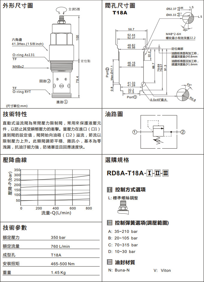 RD8A-T18A-LAN,RD8A-T18A-LCV,RD8A-T18A-LBN,RD8A-T18A-LCN,RD8A-T18A-LDN,RD8A-T18A-LAV,RD8A-T18A-LBV,RD8A-T18A-LDV,溢流閥(直動型)