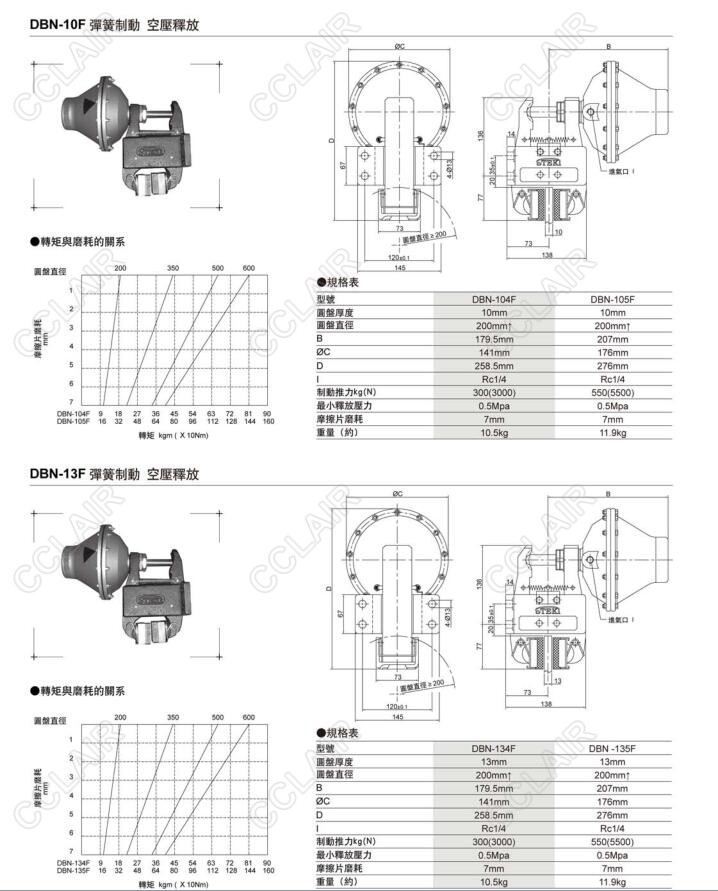 DBN-10F,DBN-104F,DBN-105F,DBN-13F,DBN-134F,DBN-135F,安全碟式彈簧制動器