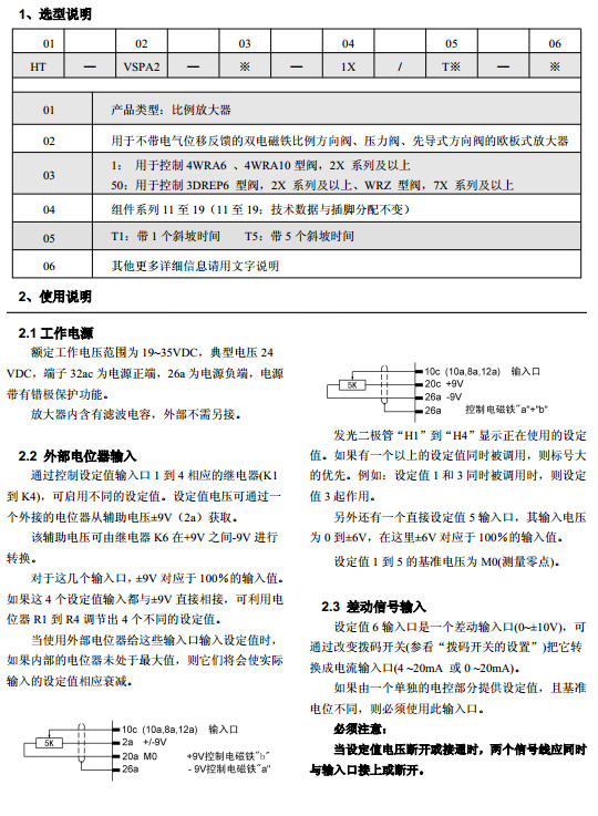 HT-VSPA2-50-15-T1,HT-VSPA2-50-16-T1,HT-VSPA2-50-17-T1,HT-VSPA2-50-18-T1比例放大器
