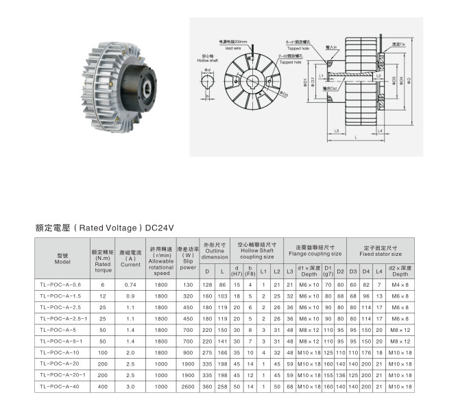 TL-POC-A-0.6,TL-POC-A-1.5,TL-POC-A-2.5,TL-POC-A-2.5-1,TL-POC-A-5,TL-POC-A-5-1,TL-POC-A-10,TL-POC-A-20,TL-POC-A-20-1,TL-POC-A-40外殼旋轉(zhuǎn)磁粉離合器