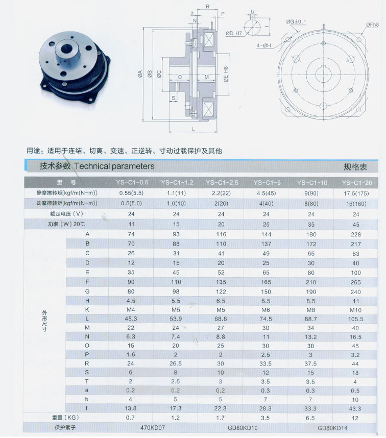 YS-C1-0.5,YS-C1-1.2,YS-C1-2.5,YS-C1-5,YS-C1-10,YS-C1-20,干式單板標準超薄型電磁離合器