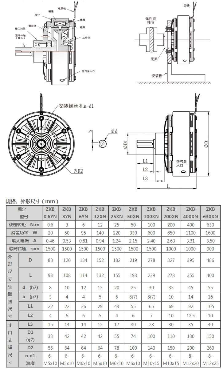 ZKB0.6YN,ZKB3YN,ZKB6YN,ZKB12XN,ZKB25XN,ZKB50XN,ZKB100XN,ZKB200XN,ZKB400XN,ZKB630XN單出軸磁粉制動器