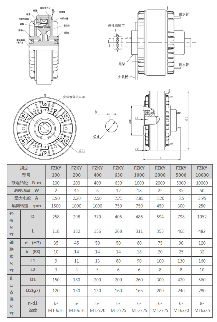 FZKY100,FZKY200,FZKY400,FZKY630,FZKY1000,FZKY2000,FZKY5000,FZKY10000空心軸磁粉制動器