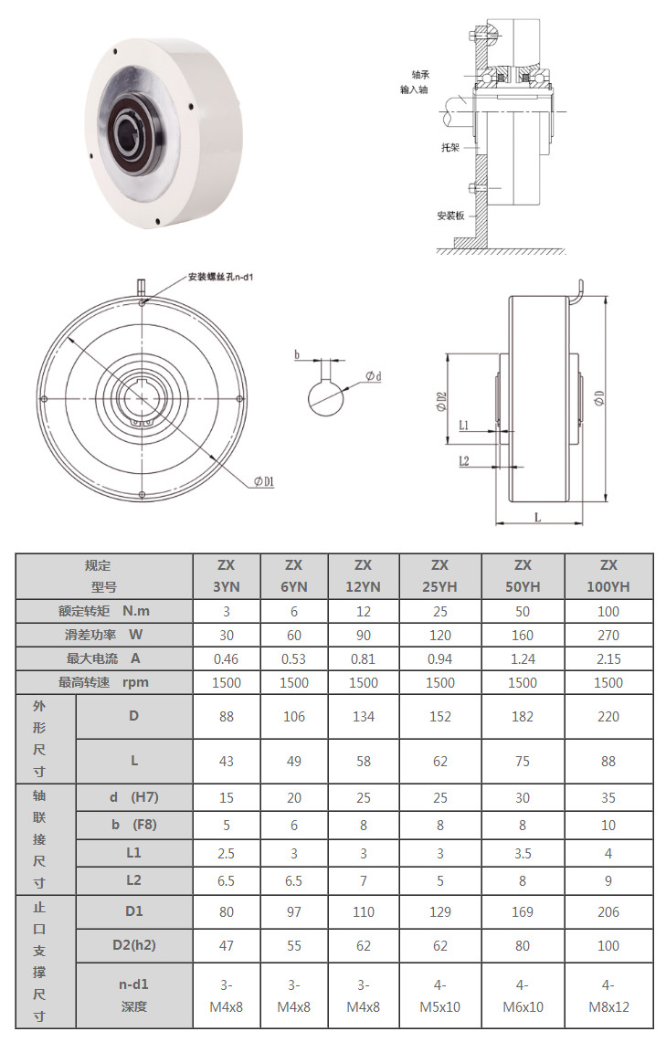 ZX3YN,ZX6YN,ZX12YN,ZX25YH,ZX50YH,ZX100YH,空心軸超薄磁粉制動(dòng)器