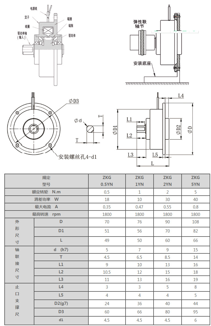 ZKG05YN,ZKG1YN,ZKG2YN,ZKG5YN,微型磁粉制動器