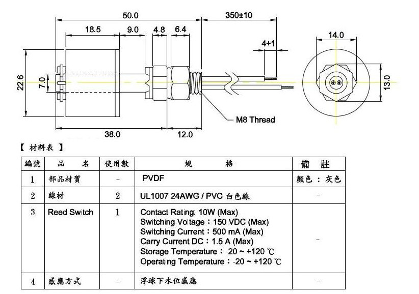 XFL-PVDF38I,進(jìn)口PVDF頂裝式浮球開(kāi)關(guān)