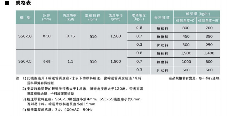 SSC-50,SSC-65,柔性螺旋輸送機