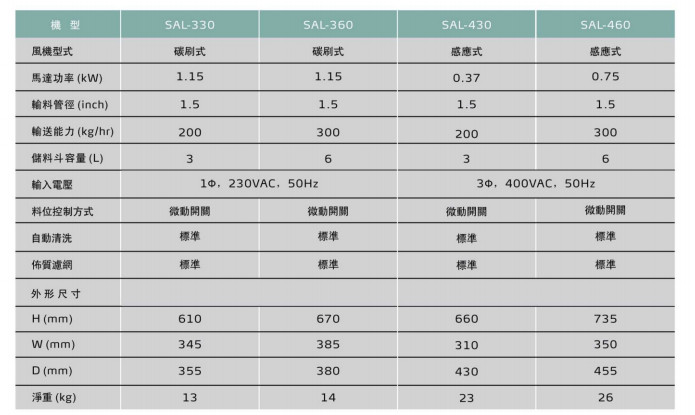 SAL-330,SAL-360,SAL-430,SAL-460,直結式真空填料機