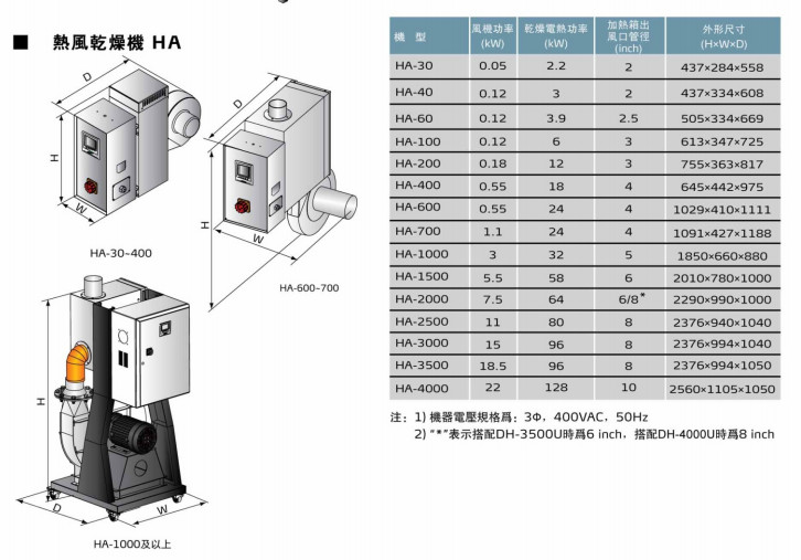 HA-30,HA-40,HA-60,HA-100,HA-200,HA-400,HA-600,HA-700,HA-1000,HA-1500,HA-2000,HA-2500,HA-3000,HA-3500,HA-4000熱風(fēng)干燥機(jī)