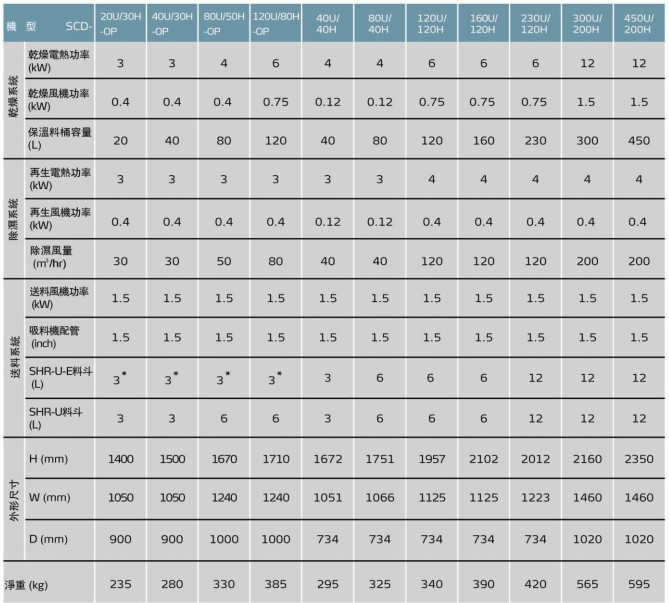 SCD-20U/30H-OP,SCD-40U/30H-OP,SCD-80U/50H-OP,SCD-120U/80H-OP,SCD-40U/40H,SCD-120U/120H,SCD-160U/120H,SCD-230U/120H,SCD-300U/200H,SCD-450U/200H, SCD-600U/400H,SCD-750U/400H,SCD-900U/700H,SCD-1200U/700H,SCD-90U*2/100H,歐化除濕干燥機送料組合