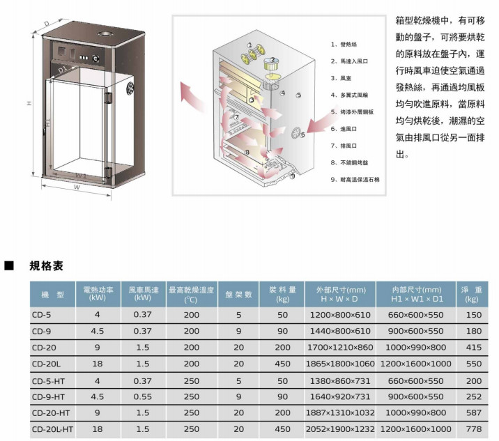 CD-5,CD-9,CD-20,CD20L,CD-5-HT,CD-9-HT,CD-20-HT,CD-20L-HT,箱型干燥機(jī)