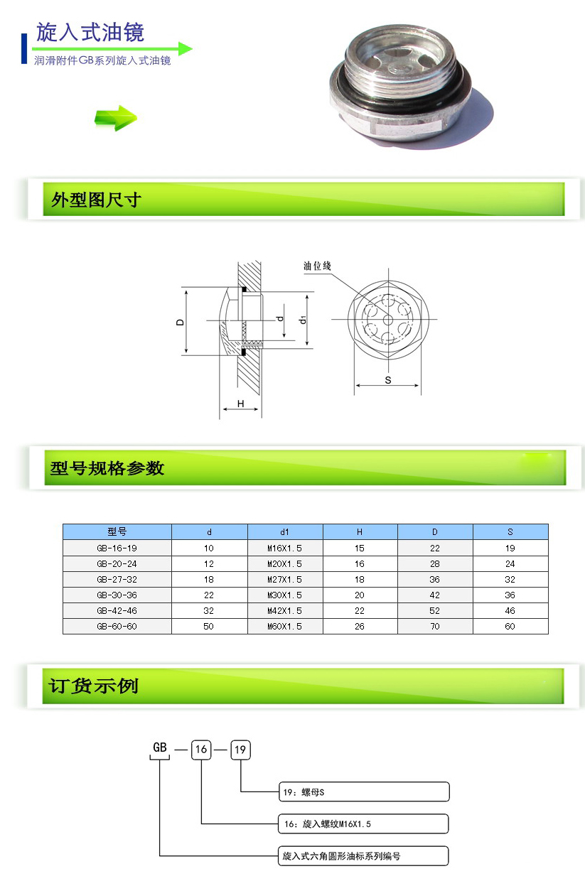 GB-16-19,GB-20-24,GB-27-32,GB-30-36,GB-42-46,GB-60-60,旋入式油鏡