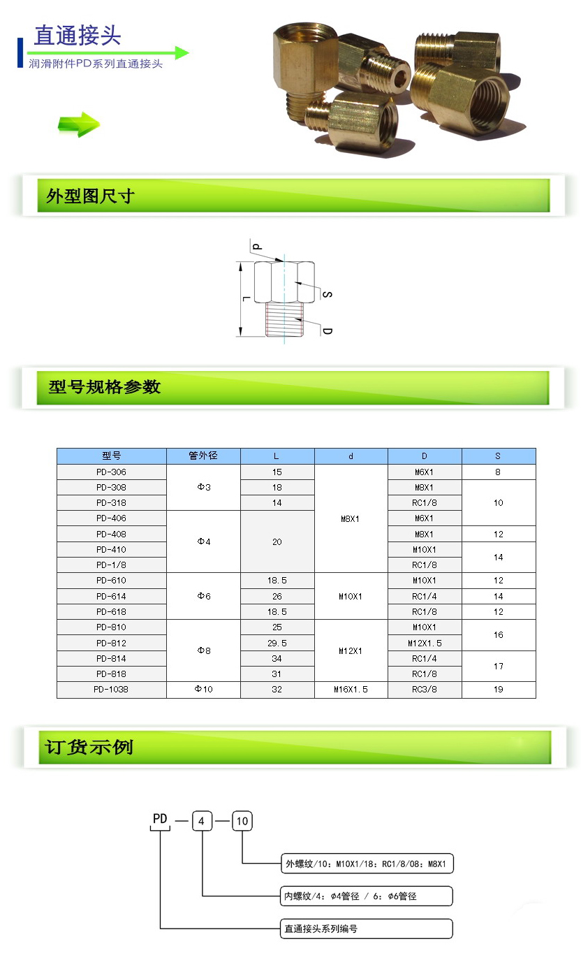 PD306,PD308,PD318,PD406,PD408,PD410,PD-1/8,PD-610,PD-614,PD-618,PD-810,PD-812,PD-814,PD-818,PD-1038,直通接頭