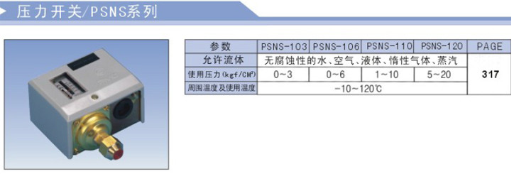 PSNS-103,PSNS-106,PSNS-110,PSNS-120,壓力開關(guān)PSNS系列