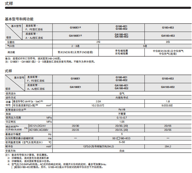 G180E1,G180-4E1,GA180E1-25,GA180-4E1-25,G180-4E2,GA180-4E2-25,G183-4E2,GA183-4E2-25,電磁閥G180系列