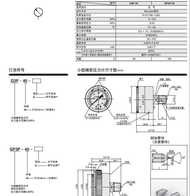 G3P-40,G3P-40-S,GP3P-40,GP3P-40-S,小型精密壓力計(jì)