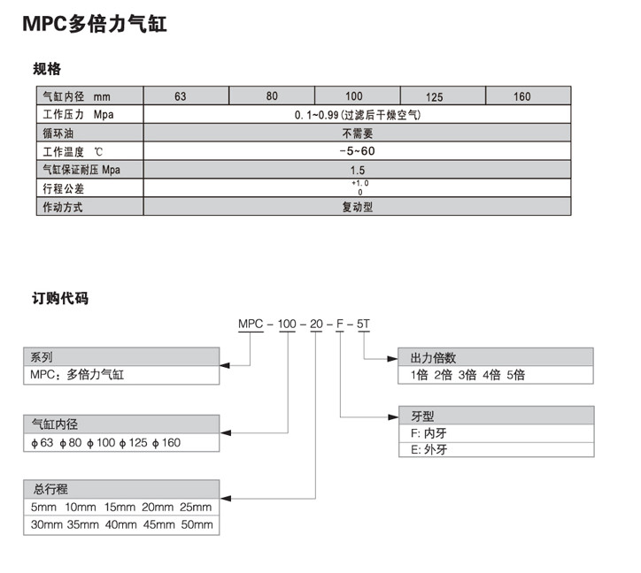 MPC-63-5,MPC-63-10,MPC-63-15,MPC-63-20,MPC-63-25,MPC-63-30,多倍力氣缸
