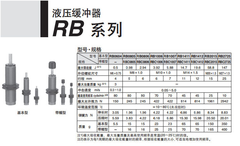 RBC0806,RBC1007,RBC1412,RBC2015,RBC2725,油壓緩沖器