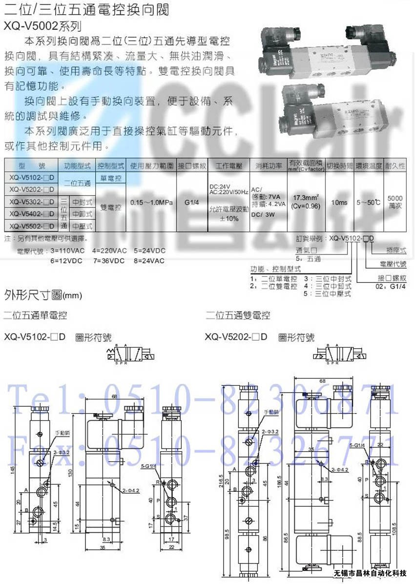 XQ-V5302-6D,XQ-V5302-7D,XQ-V5302-8D,XQ-V5402-3D,XQ-V5402-4D,二位/三位五通電控?fù)Q向閥