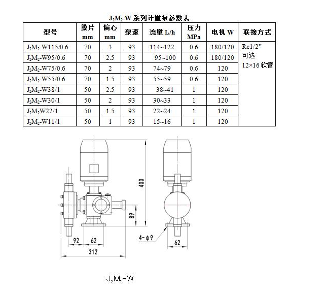 J2M2-W115/0.6,J2M2-W95/0.6,J2M2-W75/0.6,J2M2-W55/0.6,J2M2-W38/1,J2M2-W型機(jī)械隔膜式計(jì)量泵